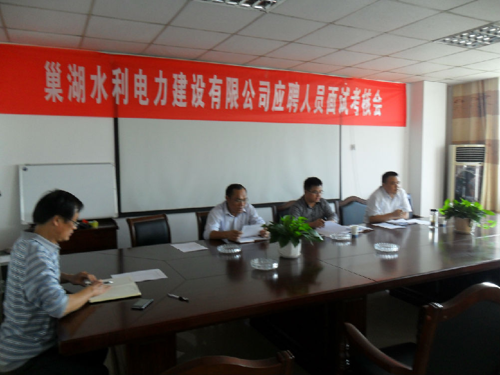 2013年10月12日15:00在公司六樓會議室召開巢湖水利電力建設有限公司應聘人員面試考核會。