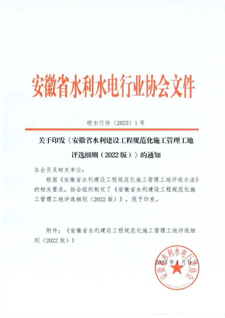 《安徽省水利建設工程規范化施工管理工地評選細則(2022版)》