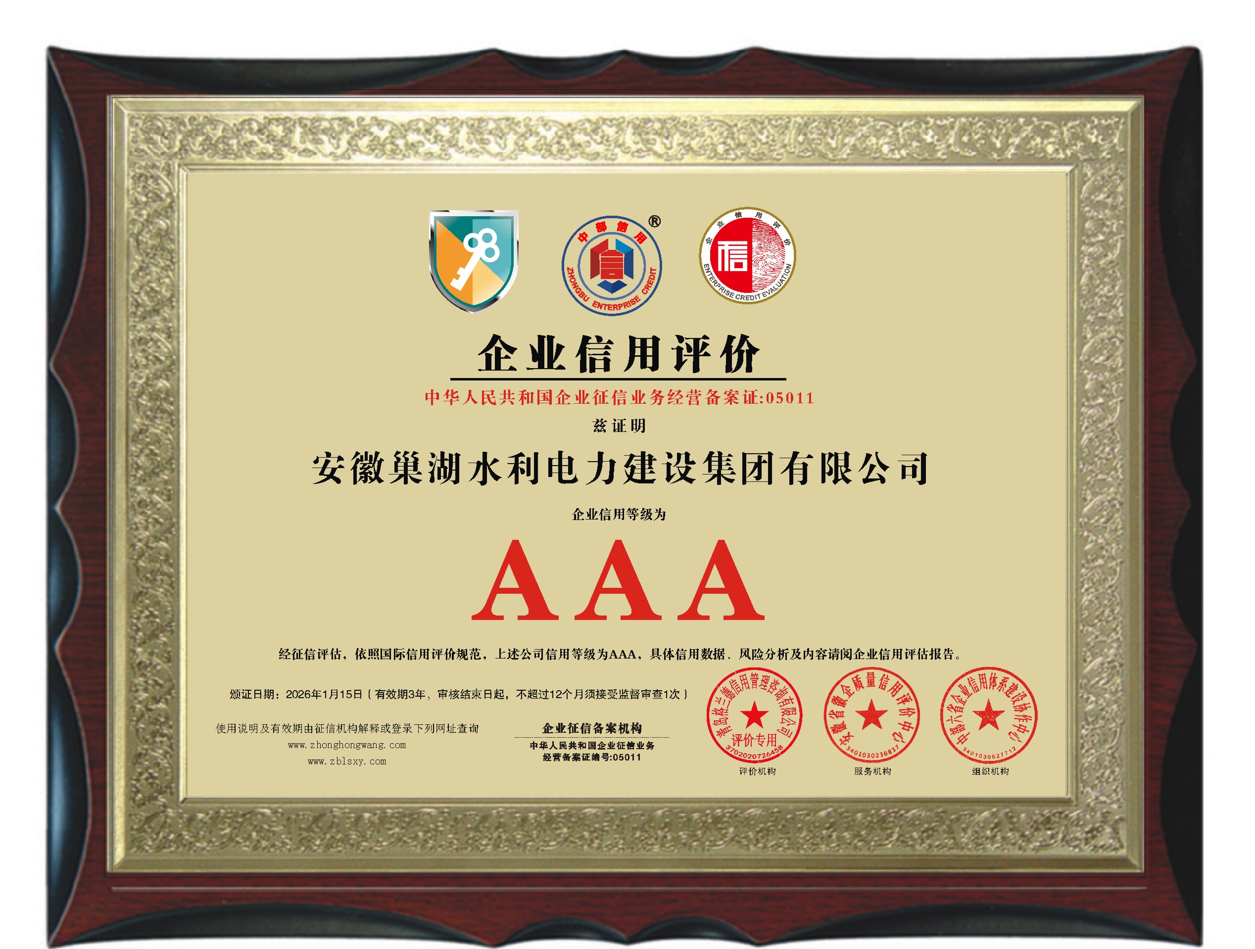 中部六省AAA級(jí)證書(shū)